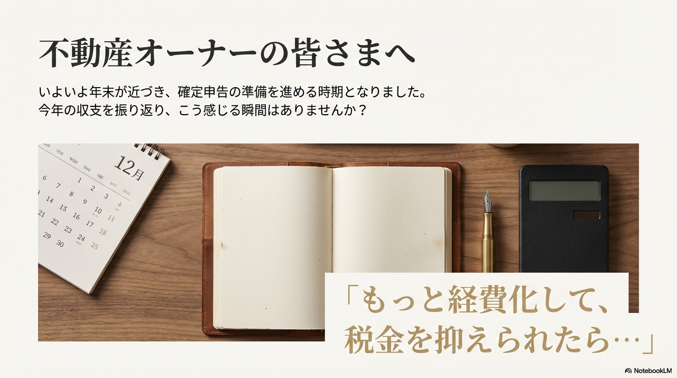 【不動産オーナーの皆さまへ】来年の手残りを増やす、賢い「節税」の種まき