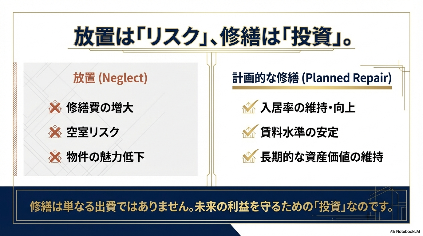 「いつか」を「今」考える。大規模修繕と法定点検は、攻めの資産運用です。